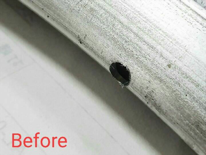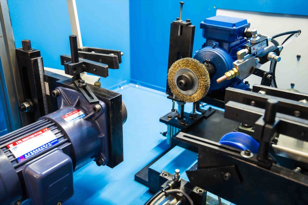 此台機器用於清理沖孔或鑽孔後,在絲孔上產生的細小毛刺